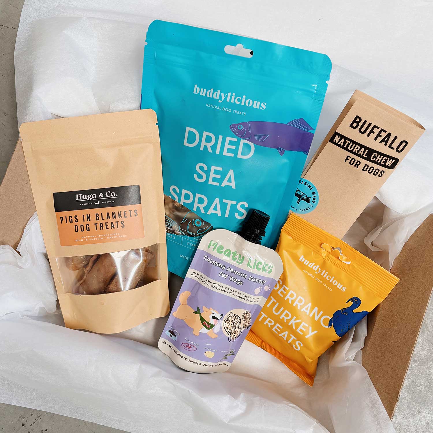 Our best-selling Classic Dog Treat Box – packed with flavour, variety and natural goodness.